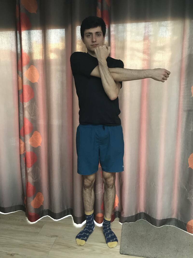 Om af te sluiten gaan we nog even stretchen. Dit is om te voorkomen dat we pijn krijgen in onze spieren en om terug tot rust te komen na deze coördinatie oefeningen. We gaan hierbij 2 belangrijke lichaamsregio's stretchen: de armen en benen.